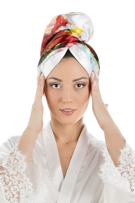 Нашите тюрбани са съчетание между артистичност и стил. Повечето от нашите дизайни са създадени от художника и дизайнер Свилена Ганчева, която рисува всеки модел на ръка преди да бъде отпечатан върху гладката сатенена материя. Всеки тюрбан La Cocona е уникално произведение на изкуството – малка доза елегантност за всекидневието.
