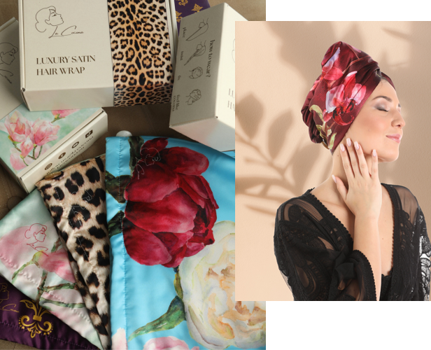 Съчетавайки деликатен сатен отвън и мек памук отвътре, нашите тюрбани са създадени да бъдат нежни към косата и практични в ежедневието. Те предпазват, подсушават и запазват блясъка, като внасят елегантност във всеки миг – у дома, след баня, на плажа или на SPA.